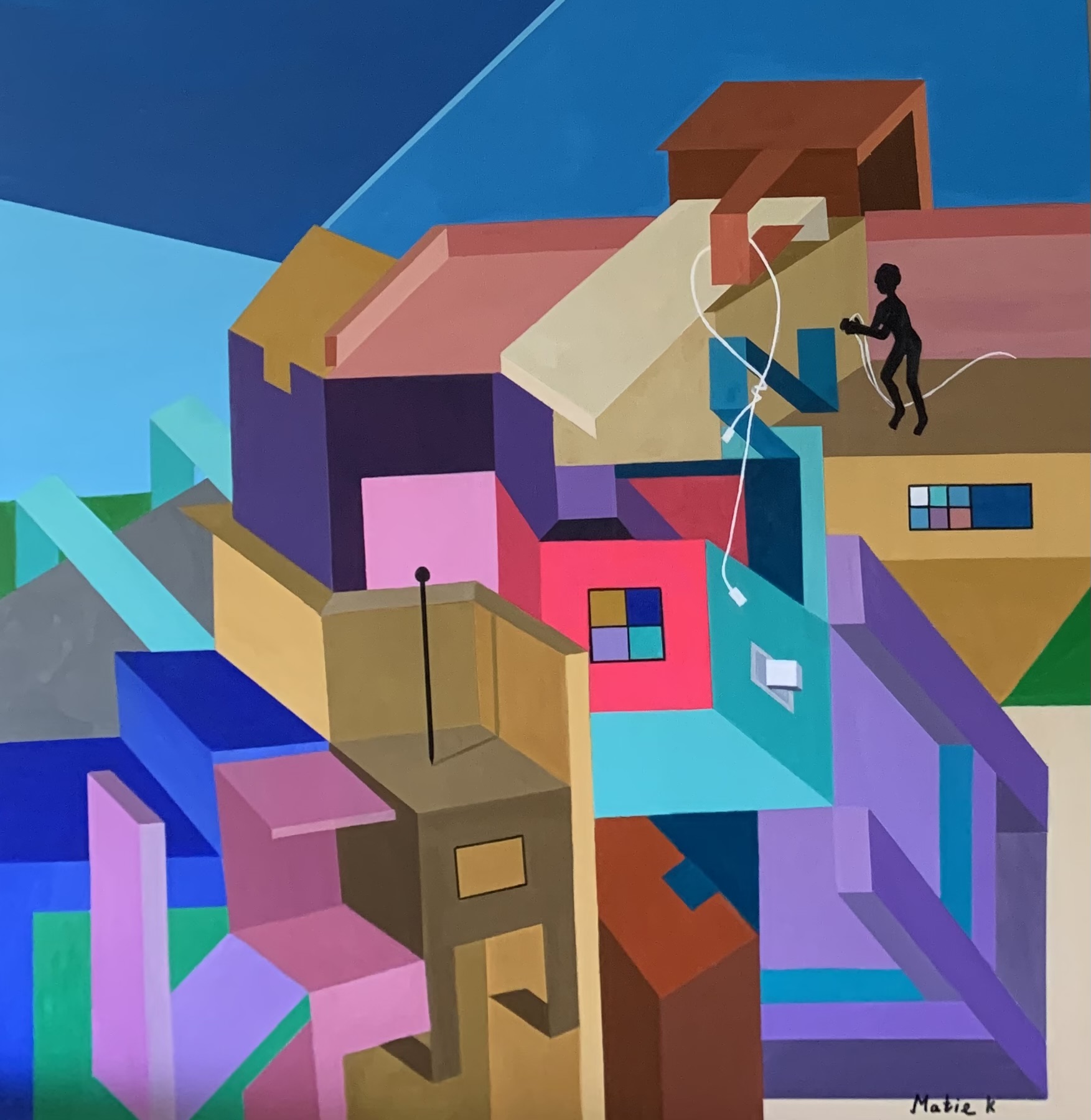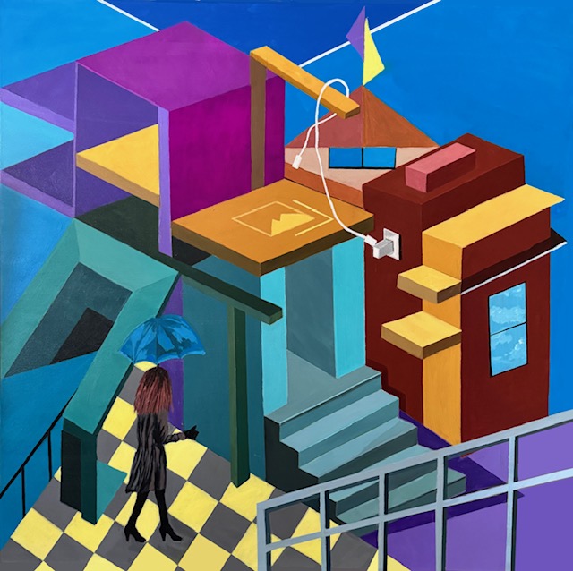 In my work, I wanted to take the elements seen in the physical structure and paint them metaphorically. I desired to break away from the traditional representation of a structure and its components. The scene is my imagination going wild, using composition and bold color. My goal is to invite the viewer to question the boundaries between reality and imagination.