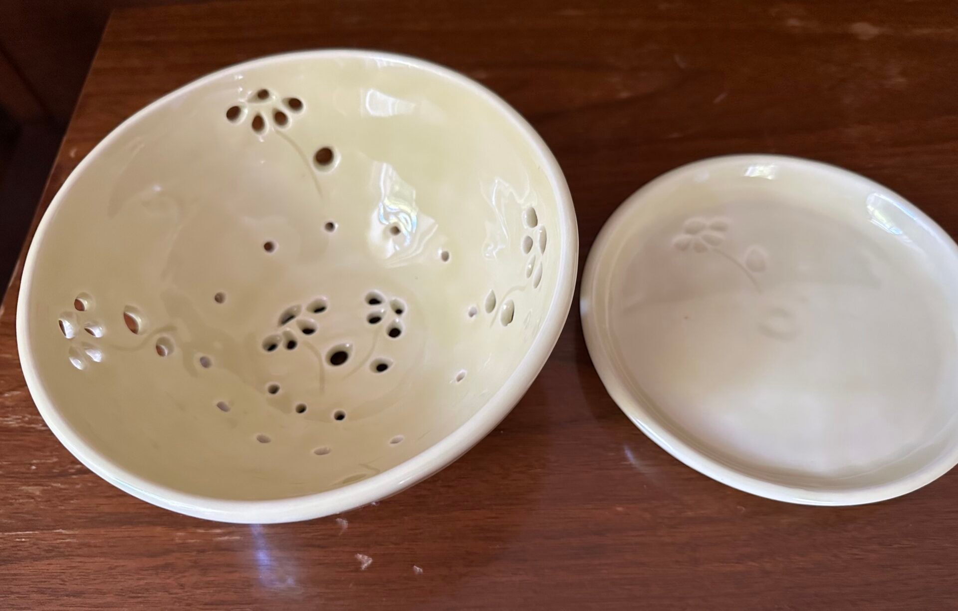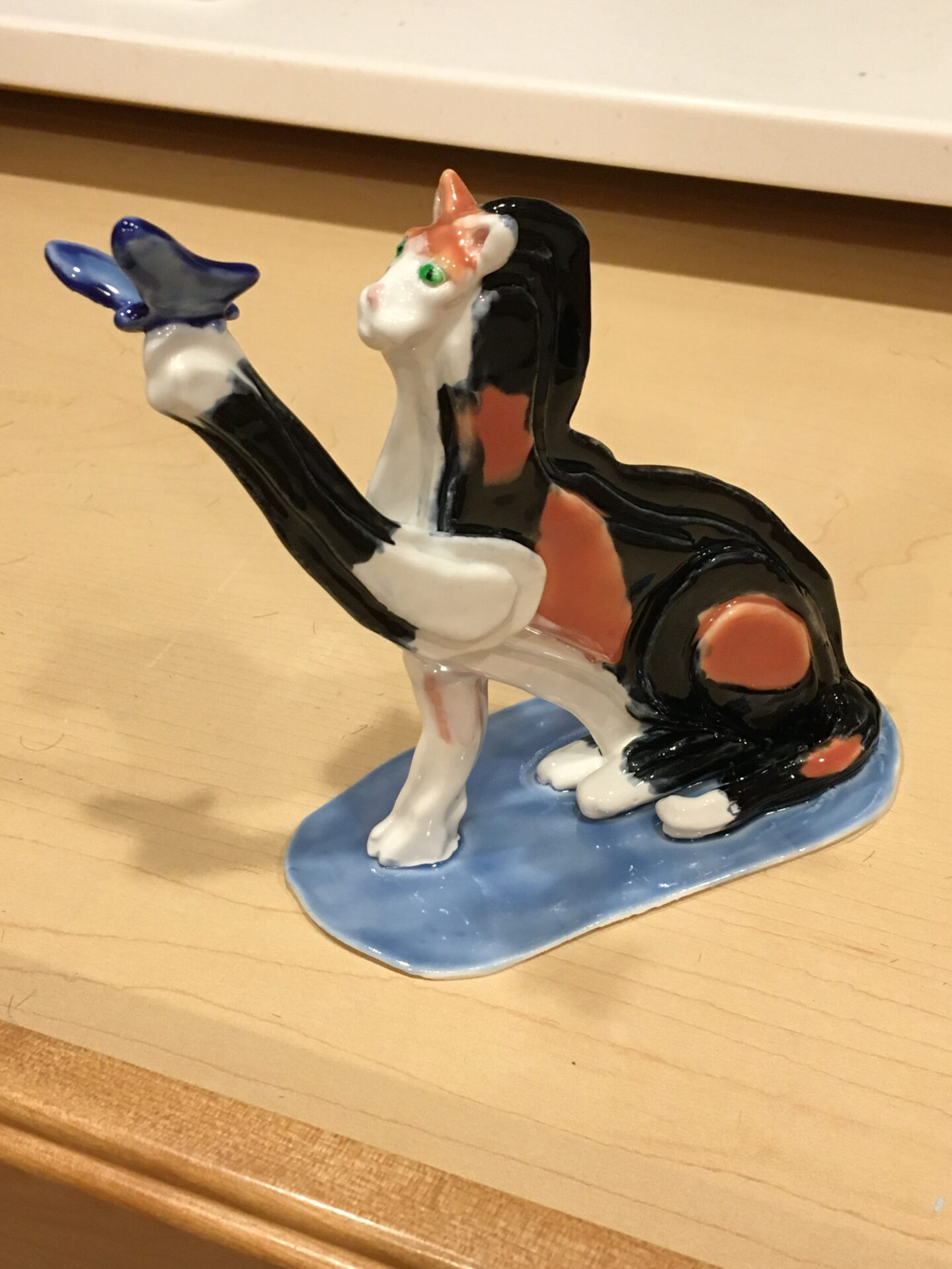 The medium of pottery lends itself to functional ware, sculpture and new design. I enjoy experimenting with animal sculptures, with new designs on functional pottery, including painting on mugs, trays and bowls and creating new functional forms with animals. I also enjoy watercolor painting, but floral portraits and landscapes.